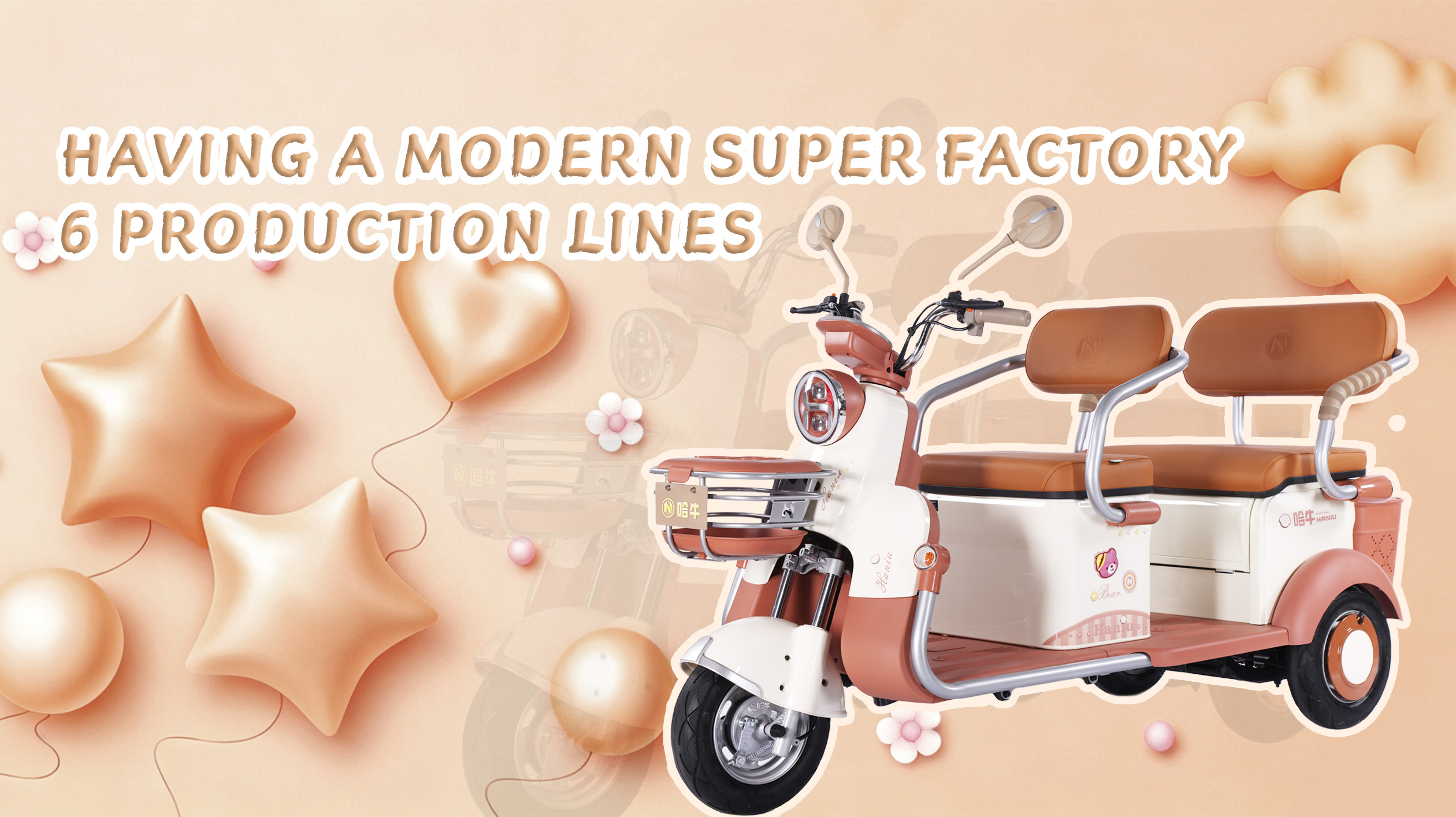 Tianjin Xingchang Electric Vehicle Co., Ltd. invested 45 million yuan in March 2021, covering an area of 36000 square meters, and established a production base in Tianjin, including six major production workshops for electrophoresis, spraying, baking paint, plastic parts, frames, and final assembly, as well as a high standard automated production line. Production and sales of a full range of electric tricycles, electric bicycles, and electric motorcycles, with an annual production capacity of over 1 million units. We have the national first-class electric motorcycle qualification and good supporting resources. We research and develop products according to the perspective of the market and users, improve the product chain, create Internet thinking, and make use of the Internet of Things plus operation mode to let Haniu electric vehicles enter thousands of households.